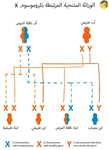 جواب: السبب الرئيسي لمرض ضمور العضلات الدوشيني هو طفرة في جين الديستروفين. و هذه الطفرة غالبا ما تنتقل من الأم الخاملة للمرض إلى طفلها الذكر (X-linked recessive disease)