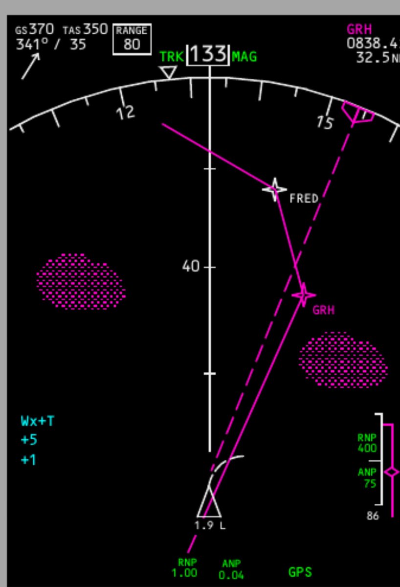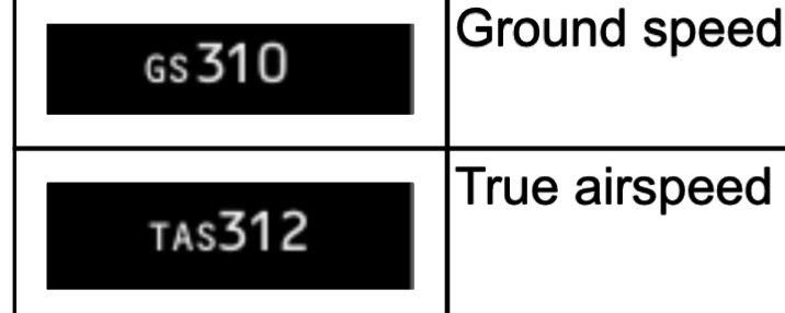 فتمثل السرعة الحقيقية للطائرة مع تصحيح تأثير الارتفاع والكثافة الهوائية.