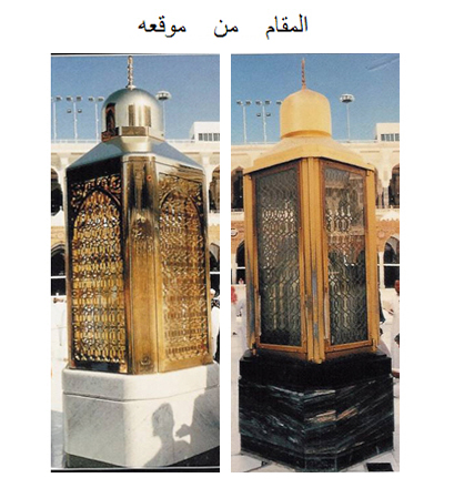 وتحقيقًا للقرار هدم البناء القائم على المقام ، وجعل في غطاء مقبب من البلور الشفاف الثمين (كريستال) ؛ ليسهل من خلاله رؤية حَجَر المقام وآثار قدمي إبراهيم عليه السلام . وقد غلف الغطاء البلوري بشبكة معدنية مذهبة تحمل قبة لطيفة صغيرة وهلالاً في أعلاه .
