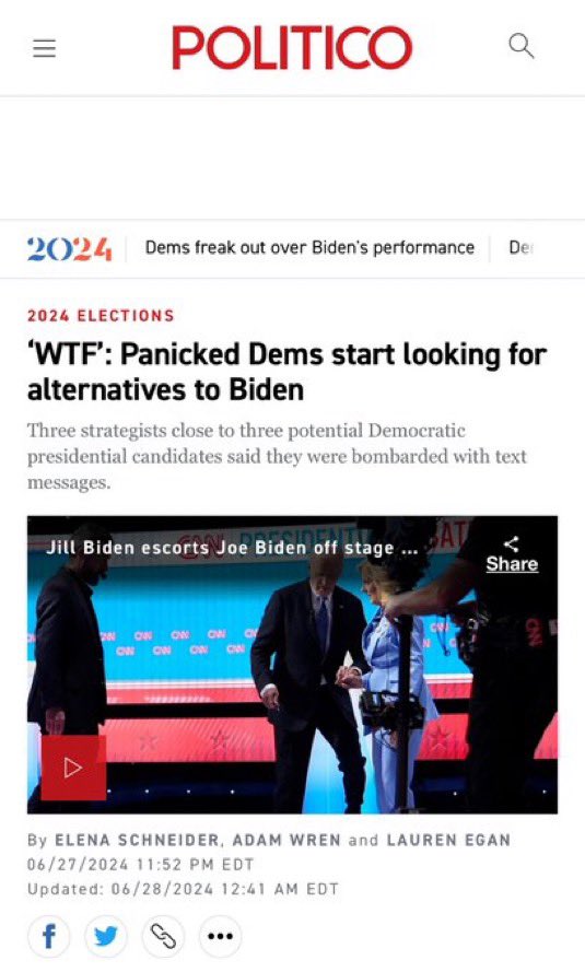 • بالنسبة للديموقراطيين فـ الجميع في "حالة ذعر شديدة" من أداء الرئيس بايدن على كلام الـ CNN ، تقريبا كل الصحف و القنوات اليسارية قالت نفس الكلام !