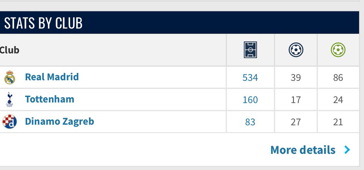هنا أرقام الإتنين في جميع البطولات...وبعيدا عن أرقام تشافي في الدوري القطري...هتلاقي تفوق كاسح في الأرقام خاصة الاسيست...تشافي لعب في برشلونة بس..مودريتش ارقامه متوزعه بين دينامو زغرب و توتنهام و ريال مدريد...دون نسيان نقطة مهمة جدا ان مودريتش ف اول ناديين كان صانع لعب 👇👇