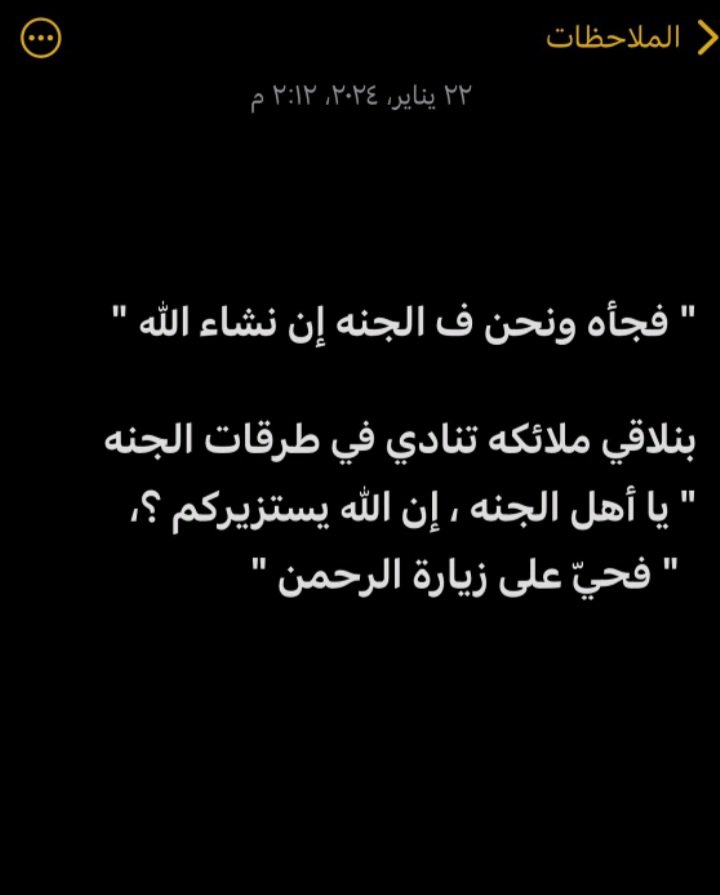 فجأة ونحن في الجنة إن شاء الله نسمع صوت الملائكة تنادي في طرقات الجنة "يا أهل الجنة ، إن الله يستزيركم ! فحيّوا علي زيارة الرحمن "