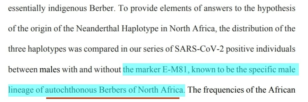 ▪︎و تذكر هنا الدراسة كما ذكرنا ان M81 علامة خاصة #بالامازيغ_البربر . ""أخيرًا، تم تحديد النمط الجيني للعلامة E-M81 الخاصة بالبربر لدى الذكور في سلسلة دراستنا حول كوفيد-19"".