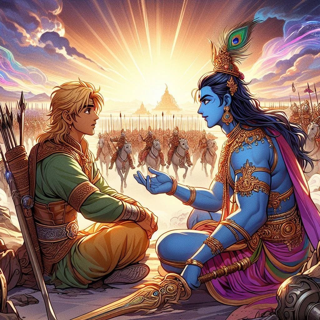 11/15 Shri Krishna himself motivates Arjuna for battle, saying a Kshatriya either achieves heaven by dying in battle or enjoys earthly pleasures by winning. #DivineWisdom