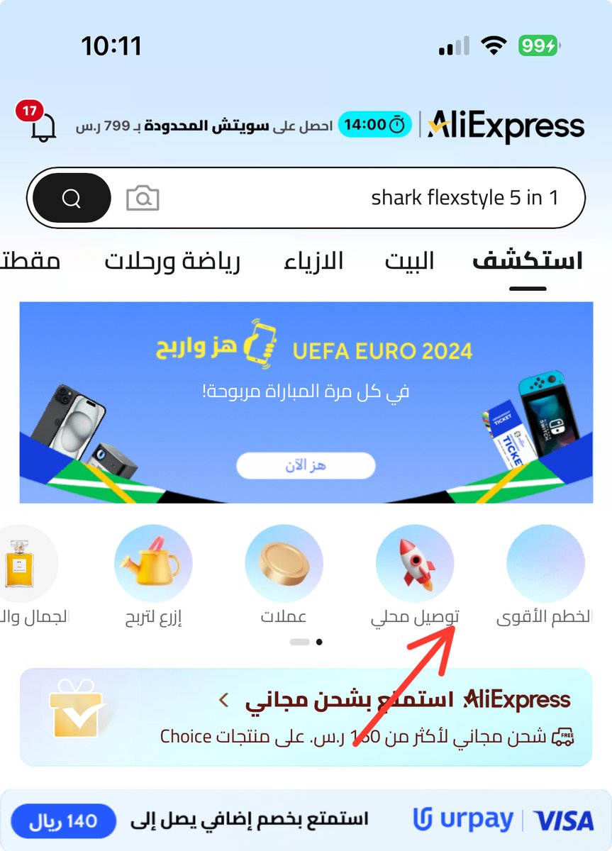 اول شي اذا فتحنا تطبيق علي اكسبرس نلقى زي الخيارات نضغط على توصيل محلي 👇🏼..