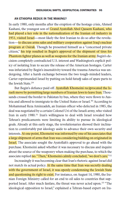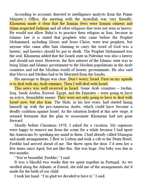 ١- قبل وصول الخميني إلى السلطة بشهر تواصلت إسرائيل معه وارادت معرفة نوايا الخميني تجاه الكيان الصهيوني