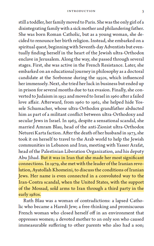 هذه الرسائل كانت تنقل عن طريق "روث بلاو" زوجة الصهيوني "نيتوري كارتا" والتقت شخصياً بالخميني عدة مرات.