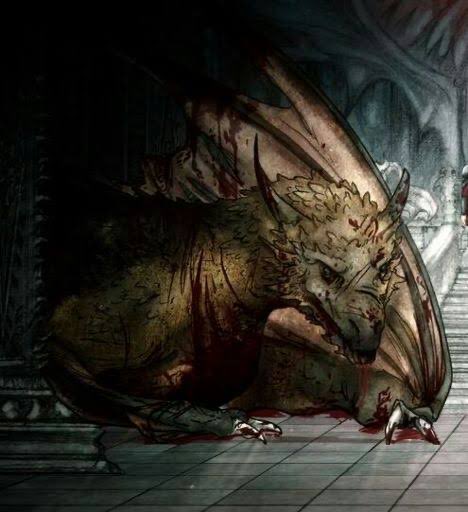 "مَن كانوا أقرب إلى التَّنانين لم #يعيشوا ليحكوا ما جرى، والذين كانوا أبعد لم يستطيعوا #الرُّؤية من اللَّهب والدُّخان. مضَت ساعات قبل أن تهمد النِّيران، لكن من وسط الرَّماد #وحدها ڤاجهار نهضَت سليمةً، فيما #هلكَت ميليس إذ حطَّمتها السَّقطة وتجندلَت ممزَّعة الأوصال على الأرض، أمَّا صنفاير، ذلك الوحش الذَّهبي البهي، فقد تمزَّق نصف جناحه، في حين أصيبَ راكبه الملكي بكسورٍ في #الضُّلوع وكسرٍ في #الورك وحروقٍ غطَّت نصف جسده. #ذراعه اليُسرى كانت الأسوأ حالًا، إذ اشتعلَ فيها لهب التنِّين بلظًى #صهرَ درع الملك في #لحمه."
