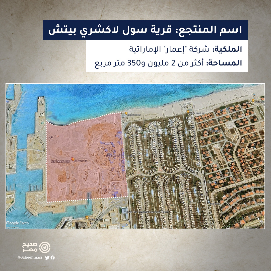 ✅ تعد قرية سول لاكشري بيتش امتدادًا لمشروعات شركة "إعمار" الإماراتية في الساحل الشمالي، إذ أُسست على مساحة أكثر من 2 مليون و350 متر مربع، وتقع عند الكيلو 160 على طريق الإسكندرية/ مرسى مطروح. [2]