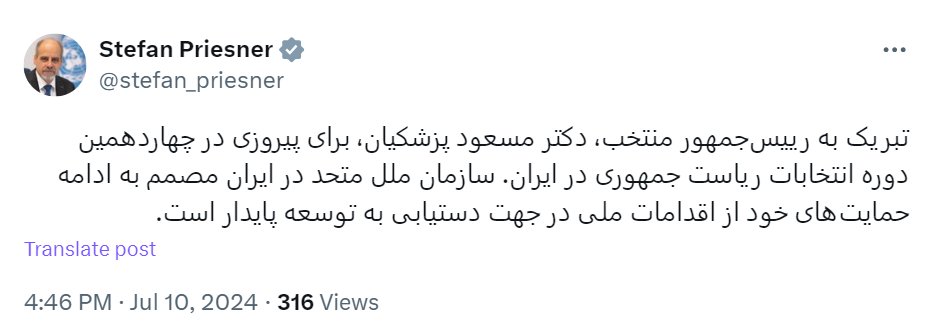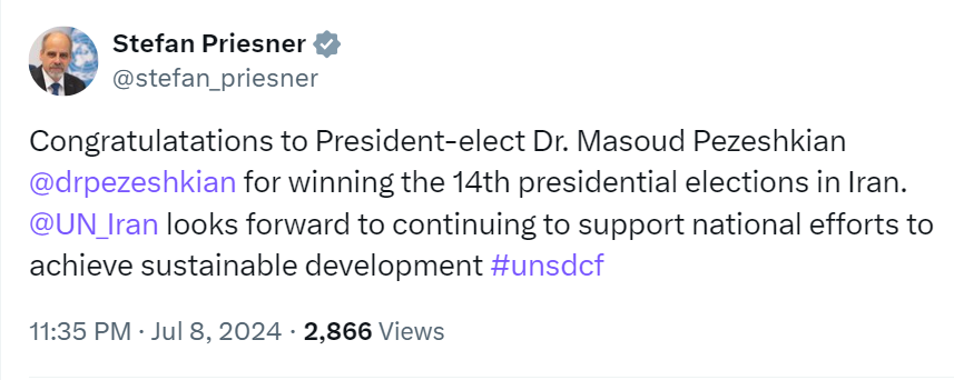 نکته: UNSDCF که در انتهای توییت انگلیسی پرایزنر آمده، چهارچوب همکاری توسعهء پایدار سازمان ملل برای سالهای 2023-2027 در ایران است که پیشتر به توضیح آن پرداختهام.