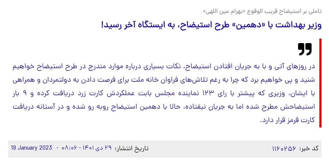 11/12. ظاهراً هیچ امیدی به انتخاب یک وزیر بهداشت مدیر، مدبر و کارآمد نباید داشت.