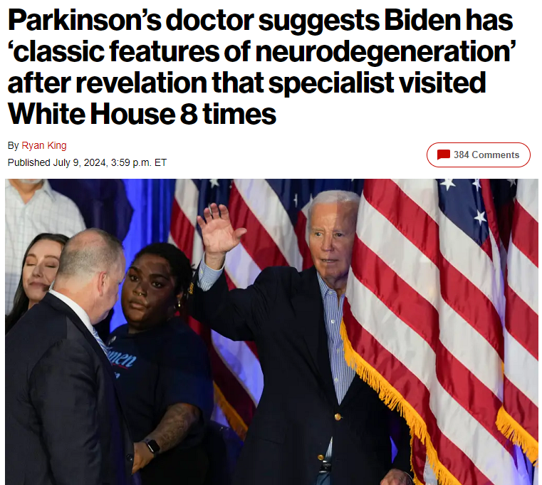 يُذكر أن سجلات زوار البيت الأبيض كشفت عن تردد طبيب أعصاب للمبنى الرئاسي 8 مرات خلال الأشهر الماضية وهذا ما أثار الشكوك حول الصحة العقلية للرئيس الأمريكي بايدن وأنباء تقول أنه مصاب بالتنكّس العصبي (مثل مرض باركنسون ومرض الزهايمر).