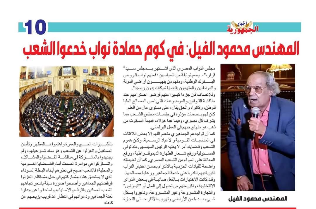 كتب عمنا الكادر السياسي الوطني المخضرم الذى تعلمنا منه كثيرا ودائما نسعد ونتعلم مما يكتبه عمنا الفاضل المناضل/محمود الفيل بالعدد ٤ من جريدة أخبار الجمهورية