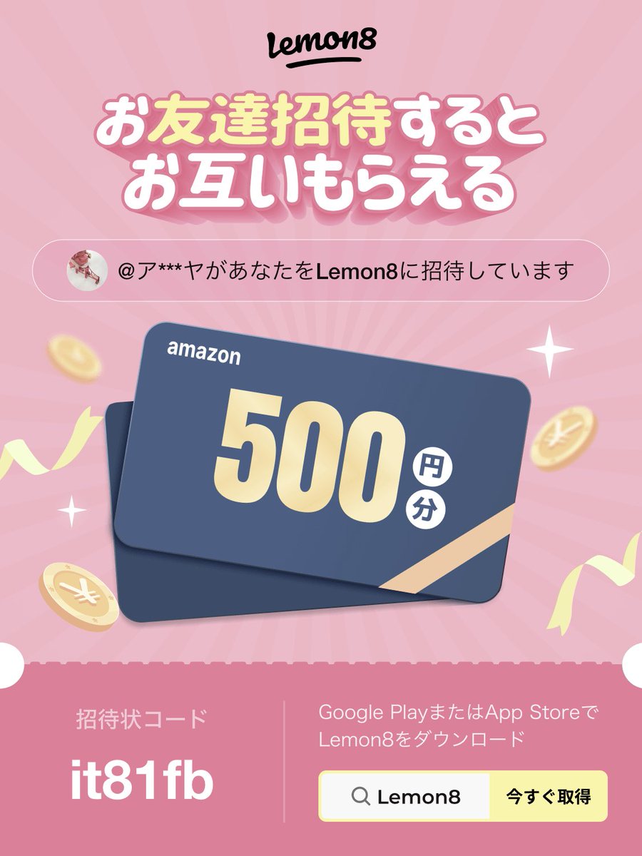 レモン8、ダウンロードして3日間タスク完了すると誰でも500円のアマギフ貰えるよ!タスクめっちゃ簡単🍋ぜひに〜!