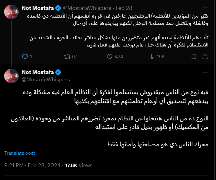 عموما أنا عارف إن دي هي قناعة الكثير الداخلية في مصر حتى المؤيدين