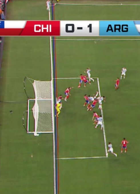 لكن حكم الفيديو المساعد ألغاه بعد ذلك بداعي التسلل على الرغم من أن المدافع الأرجنتيني خلف لاعب تشيلي