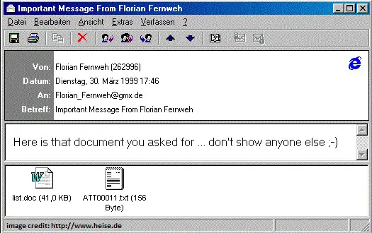 انبثق بعام 1999 واستهدف الايميلات، كان يوجد في صندوق البريد الإلكتروني، وعند فتح ملفه يقوم بإرسال نفسه تلقائيًا من ايميل الضحية إلى أول 50 شخص في دفتر العناوين، تسبب الفيروس لخسارة الكثير من المستخدمين معرّفات الايميلات الخاصة بهم