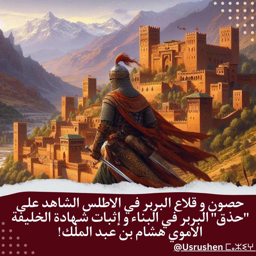 ☆▪︎و ذكرنا شهادة مهمة تثبت ان المعمار المغرب بخصونه و قلاعه كان موجودا و استشهد به الخليفة الاموي هشام بن عبد الملك في الحروب مع الامازيغ حينما قتل الامازيغ المغاربة كل اشرافه و كبار قادته و وجوه العرب، فكانت غضبته العربية الشهيرة شاهدة على فن البناء عند الامازيغ.