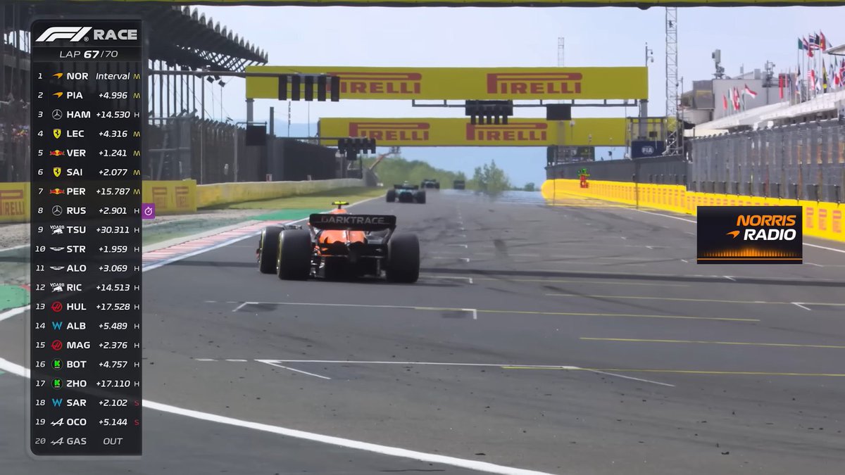 📻المهندس: "لاندو، لا يزال هناك 21 لفة متبقية. لديك حاليًا أسرع لفة، حافظ على إطاراتك لاتضغط".