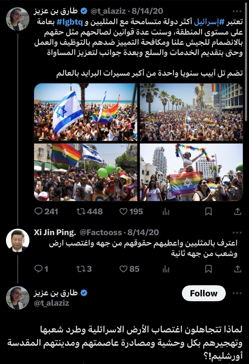 طارق عزيز من أب سعودي وأم سورية درس في أمريكا وابتدأ يغرد عن مجتمع الميم مع تملّق مستمر للنظام في واحده من تناقضاته التي لا تنتهي (انقد القمع ومجّد القامع).