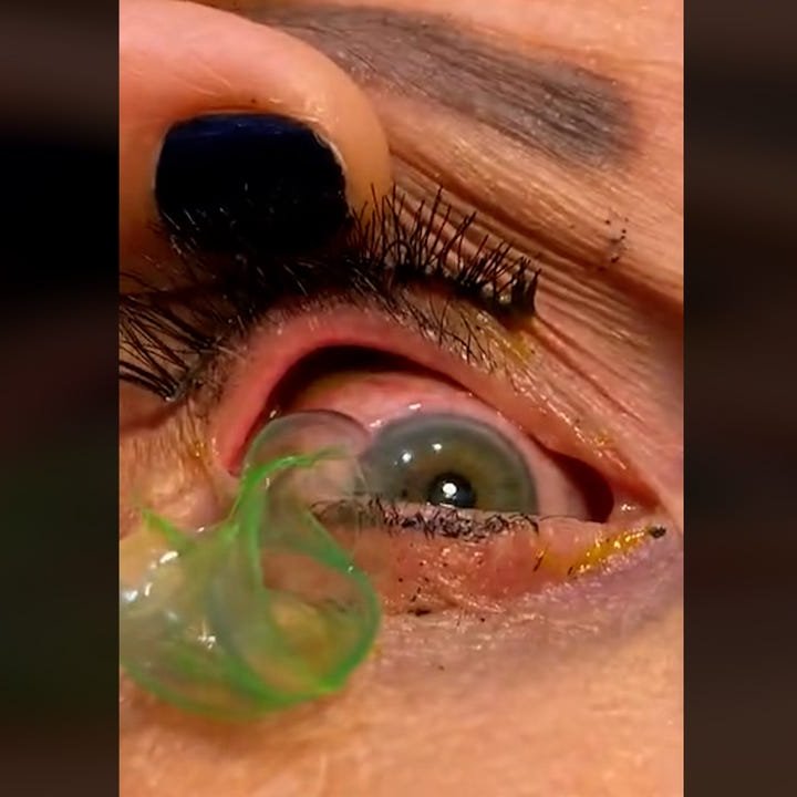 قرر أطباء المريضة إجراء عملية جراحية لإزالتها، وحدث شيء لا يمكن تفسيره في هذه العملية. بعد إزالتها مباشرة، تمزق الكيس وانفتح ليكشف عن عدسة لاصقة هشة للغاية. كانت عدسة لاصقة صلبة، تُعرف أيضًا باسم العدسات اللاصقة الصلبة النفاذة للغاز، لكن المريضة لم تكن ترتدي هذا النوع من العدسات اللاصقة. لم تكن قد استخدمت العدسات اللاصقة الصلبة منذ أن كانت مراهقة