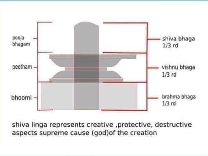निचला हिस्सा ब्रह्मा जी (सृष्टि के रचयिता), मध्य भाग विष्णु (सृष्टि के पालनहार) और ऊपरी भाग भगवान शिव (सृष्टि के विनाशक) हैं। अर्थात शिवलिंग के जरिए ही त्रिदेव की आराधना हो जाती है। तो वहीं अन्य मान्यताओं के अनुसार, शिवलिंग का निचला हिस्सा स्त्री और ऊपरी हिस्सा पुरुष का प्रतीक होता है। अर्थता इसमें शिव-शक्ति, एक साथ वास करते हैं।