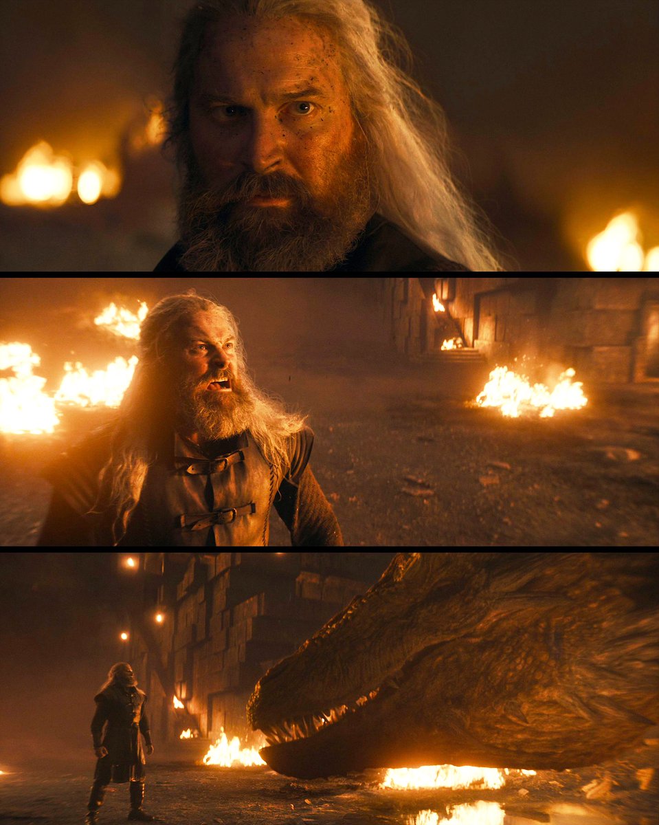 ولكن ( التنين ) بعد وفاة راكبه يستطيع