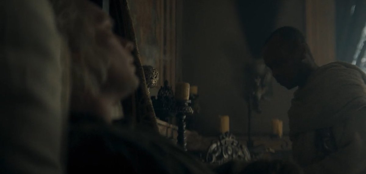 مشهد الملك إيغون في غرفته! لقد تبرأ ايغون من اخوه، والآن على إيغون النجاة، صوت الحكمة يتجسّد في لاريس، تطور شخصية لاريس هذا الموسم ملحوظ جدًا بلا أقدام ولا خرابيط😉، اقتراحات لاريس على الملك منطقية جدًا وصادرة من شخص موالي، أتمنى ايغون يعرف مكانة هذا الشخص وتضحيته لأجله.
