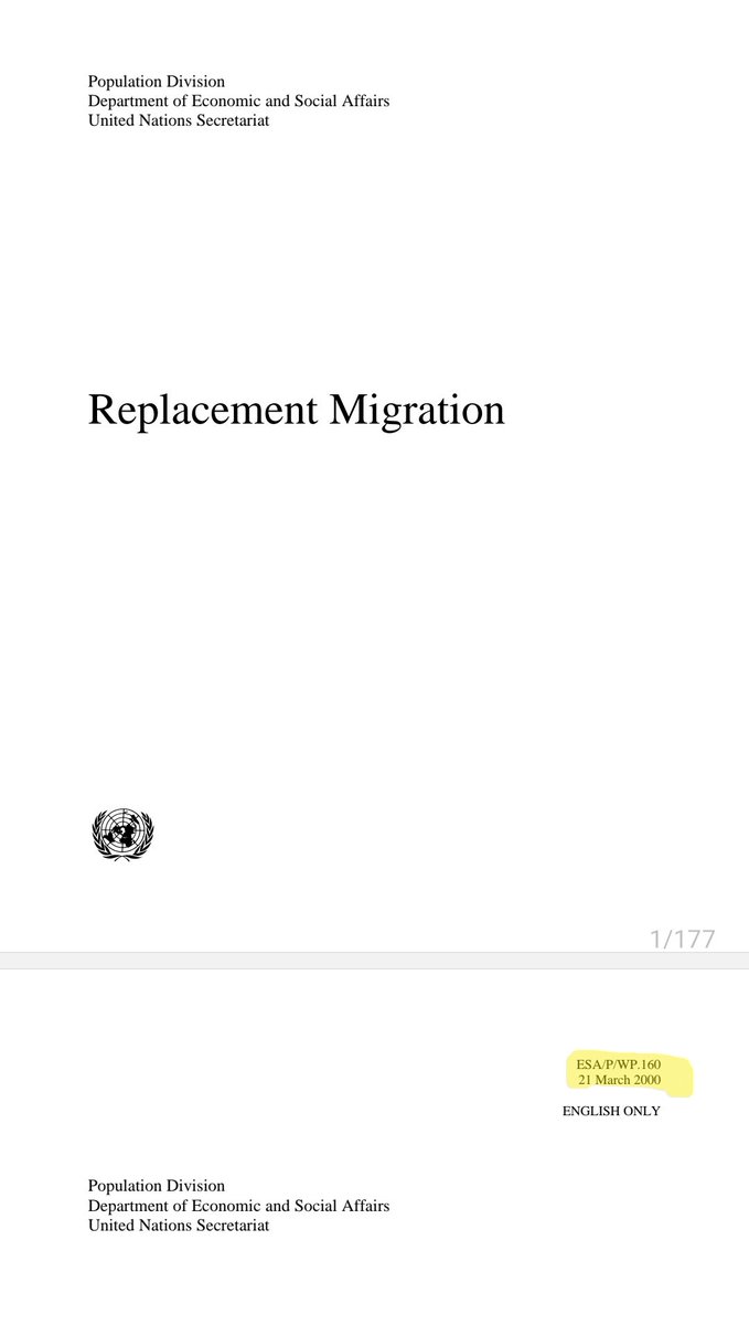 بل إن الأمم المتحدة نشرت عام ٢٠٠٠ ورقة "الهجرة الاستبدالية".