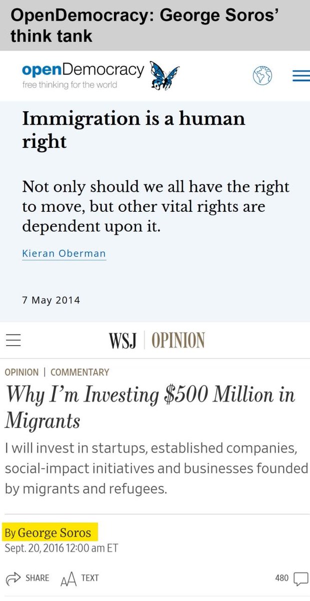 ٩) جورج سوروس يستثمر مئات الملايين من الدولارات في الترويج للهجرة، ويعلن مركز أبحاثه أن الهجرة "حق من حقوق الإنسان".