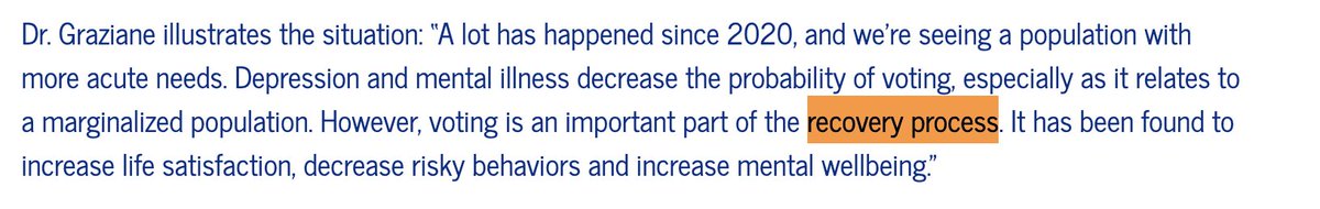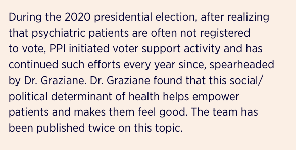 At the Pennsylvania Psychiatric Institute, Graziane, the geriatric psychiatrist, has argued that voting can "increase life satisfaction, decrease risky behaviors and increase mental wellbeing."