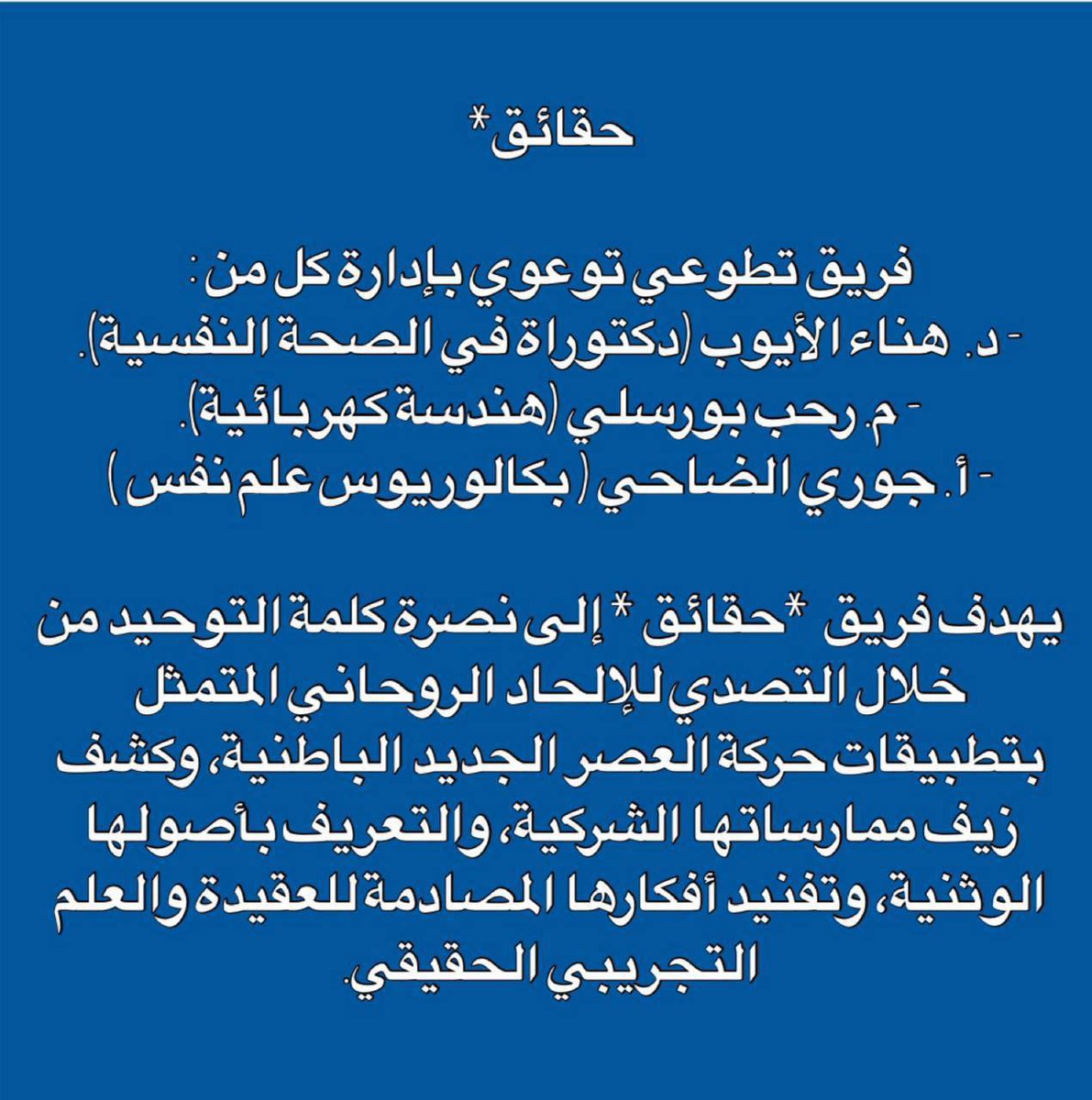 فريق تطوعي يهدف إلى التوعية بخطورة الإلحاد الروحاني المتمثل بمفاهيم وتطبيقات حركة العصر الجديد الباطنية.