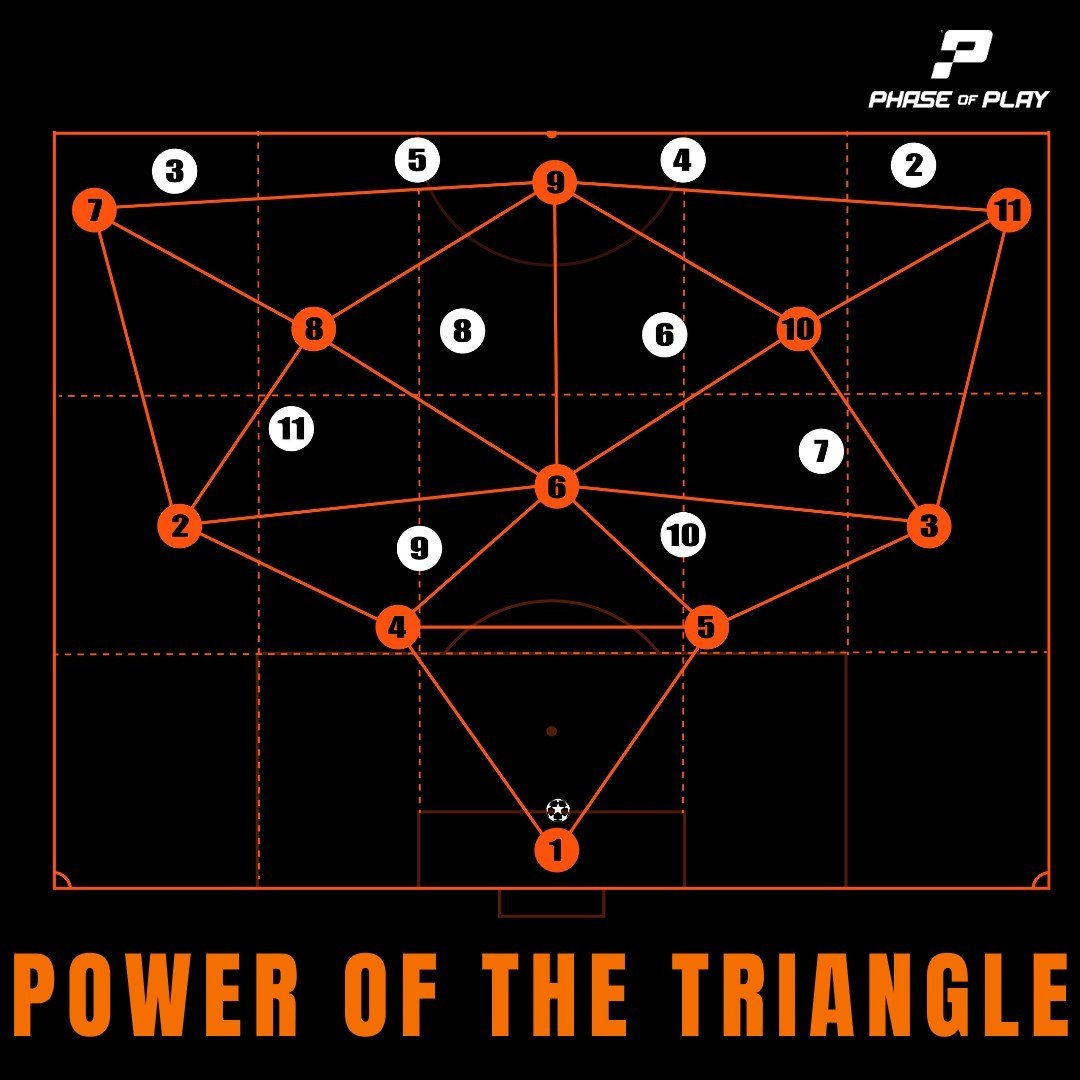 -المثلثات تساعد في التحكم في مساحة اللعب وتموضع اللاعبين فهذا التصميم يشجع اللاعبين على الحركة والتدوير المستمر للكرة مما يجعل من الصعب على المنافسين مراقبة اللاعبين