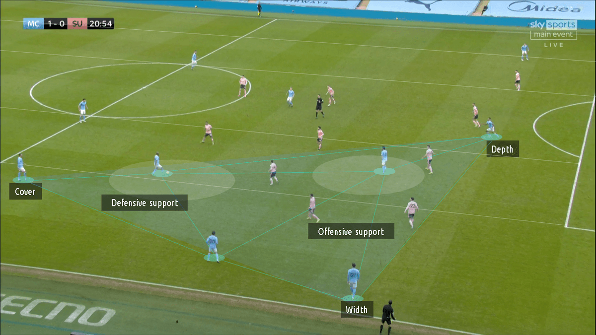 -إذا وقع أحد اللاعبين الذين يملكون الكرة في مشكلة، فلديهم منقذين فوريين للتمريرة الآمنة في هيكل مثلث مما يمنح اللاعبين المزيد من الثقة ويشجعهم على المزيد من اللعب الإبداعي