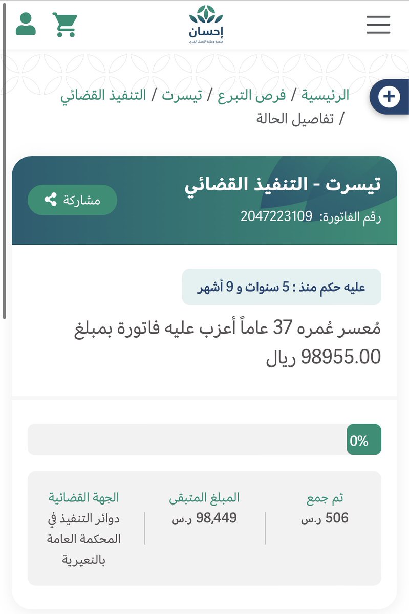 استاذنكم في حالة زميلي في العمل تراكمت عليه الديون وظروفه صعبه والحاله مسجله في منصة احسان تبرعو بلي تقدرون عليه ❤️