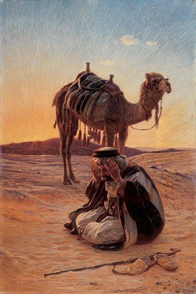 وكلما فتح له صفحةً يقوم الجمل بأكل كل الحبات ليقوم الأعرابي بقلب الصفحة فيجد الجمل حبات جديدة فيأكلها، وفي المرة التالية كرر نفس العملية ولكنه لم يقم بقلب الصفحات، وعندما رأى الجمل ذلك أخذ يقلب الصفحات بلسانه بحثاً عن الطعام، وظل الأعرابي يكرر العملية كل ثلاثة أيام حتى اليوم الخامس والثلاثين، وعندها توقف عن إطعام الجمل لخمسة أيام.