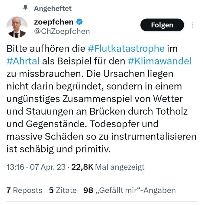 Parallel ist die #CDU immer wieder als Geisterfahrer unterwegs, wenn es darum geht das Ausmaß des Klimawandel und die Konsequenzen auf unser Land, auf uns alle und auf unsere Wirtschaft zu verstehen.