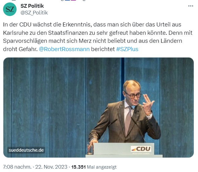 (Wir erinnern: Der Windkraftantrag benötigte unter Merkel um 36.000 Papierseiten und wurde von Habeck auf rund 500 Digitalseiten gestutzt. Es ist also die von der #CDU 16 Jahre lang ausgeweitete Bürokratie, die er rügt.)