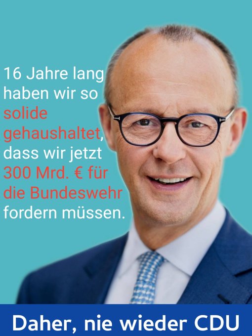 16 Jahre Bundeswehr auf Grundeis gefahren und danach meckern, weil Geld in die Bundeswehr investiert werden muss. Das war auch die #CDU.
