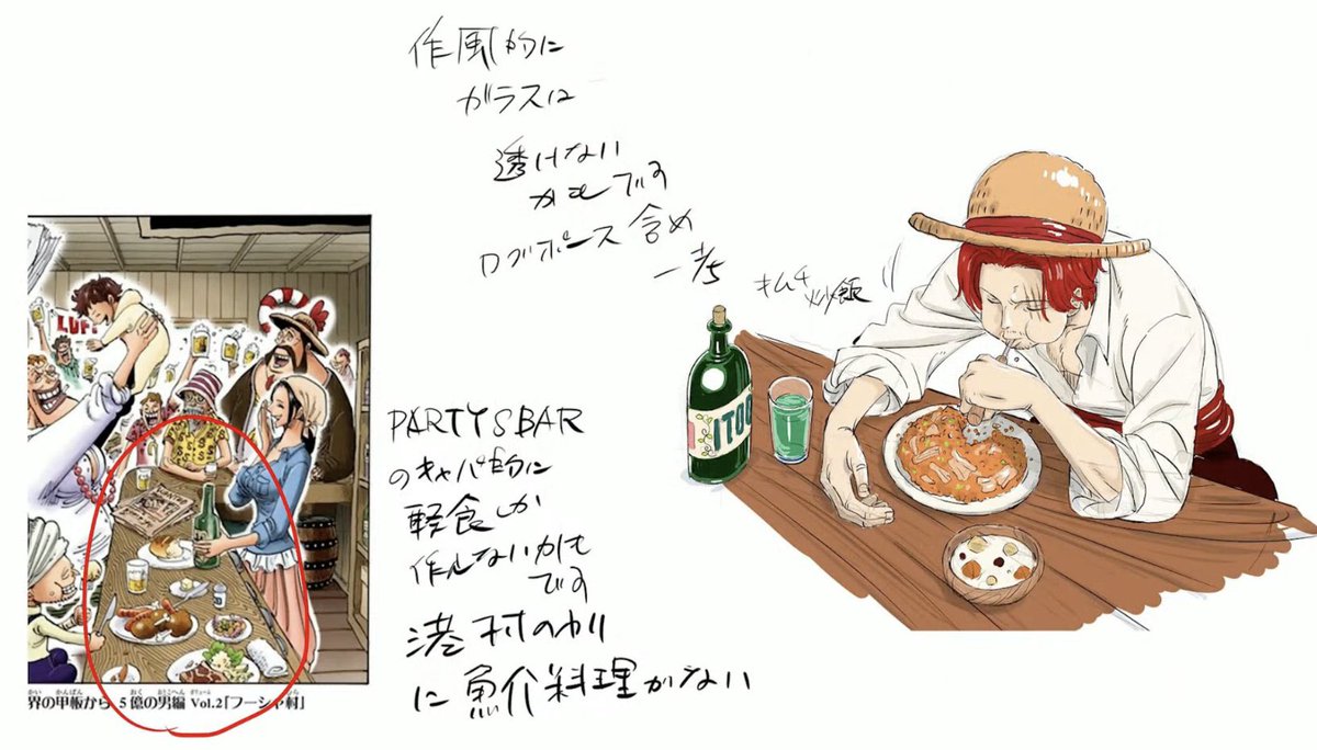 "كنت أريد أن نمر بمرحلة ماقبل الإنتاج للنظر الى عالم ون بيس أريد إظهار شريحة من الحياة التي قد لا تظهر في خلفيات المانجا. كانت تلك الفكرة التي تمكنت من جمع طاقم لهذه المهمه"