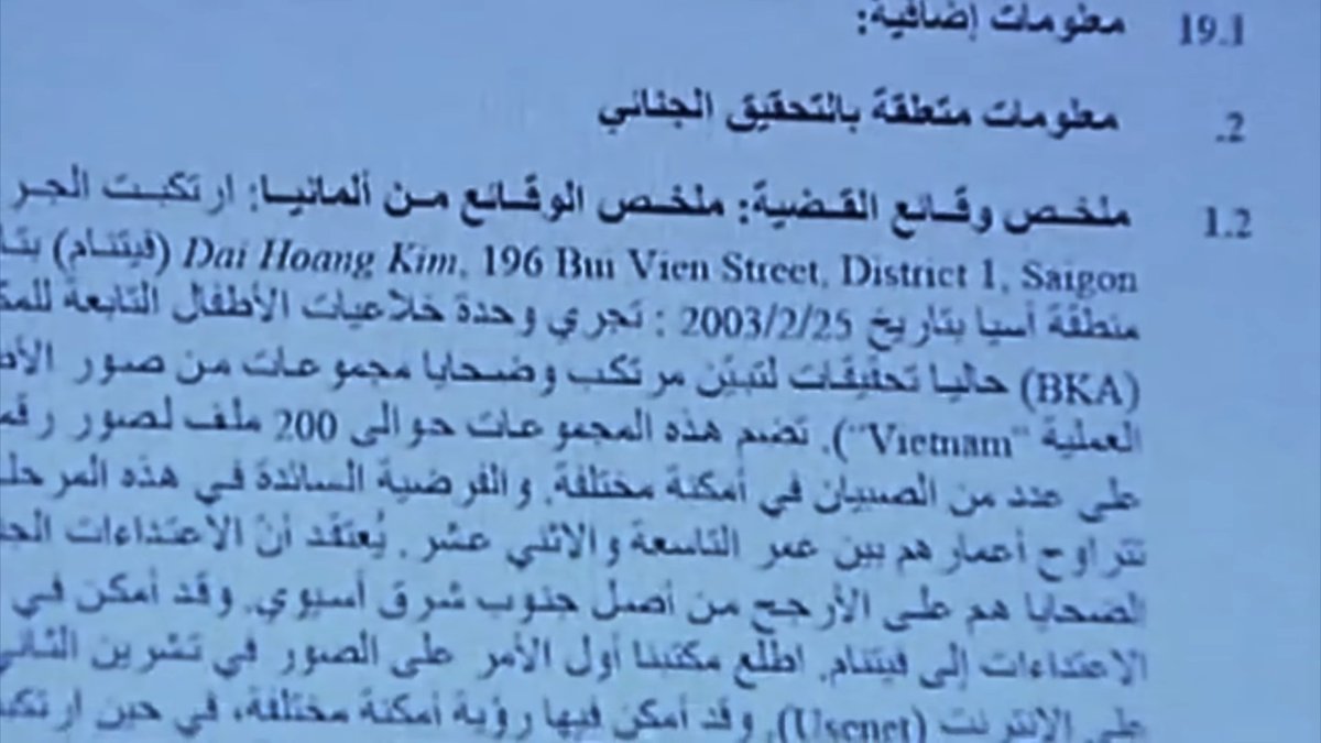 دخلت الشرطة الألمانية إلى موقع مهجور، وتحت أكوام النفايات والأجهزة القديمة وجدوا قرصًا صلبًا. وبمجرد توصيله بالكمبيوتر، ظهرت مئات الصور لمواقع مختلفة ومناظر خلابة ووجبات لذيذة، وكذلك صور لاعتداءات جنسية ضد أطفال، اعتداءات بشكل أسوأ مما يمكن تخيله، ولم يكن ذلك على طفل واحد فقط، بل على أفراد مختلفين.