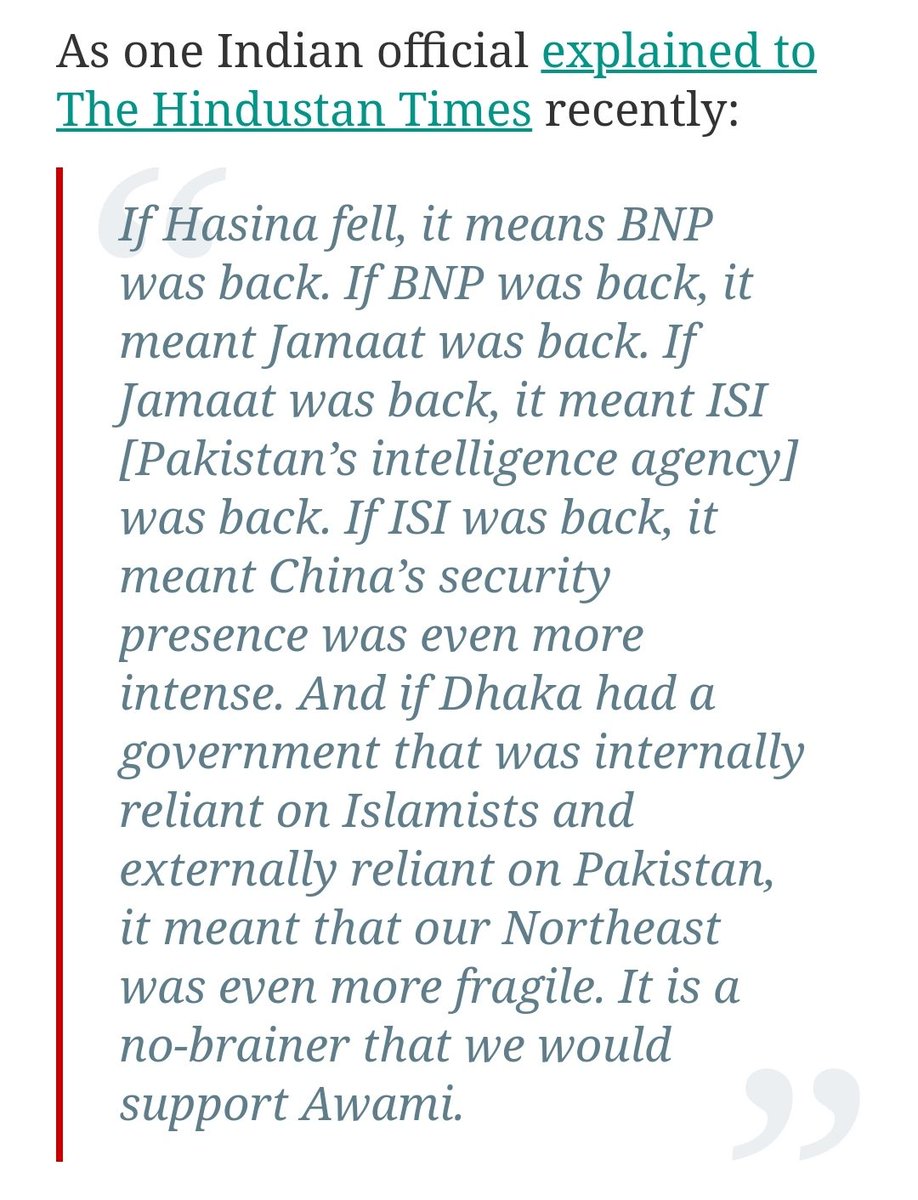 त्यातल्या त्यात धर्मनिरपेक्ष आवामी लीग (अर्थात शेख हसीना - मुजीबची मुलगी) आणि पाकिस्तानचा पाठींबा असलेली जमात ए इस्लाम + BNP पक्ष अशी धर्मांधेतेची किनार आहेच..!