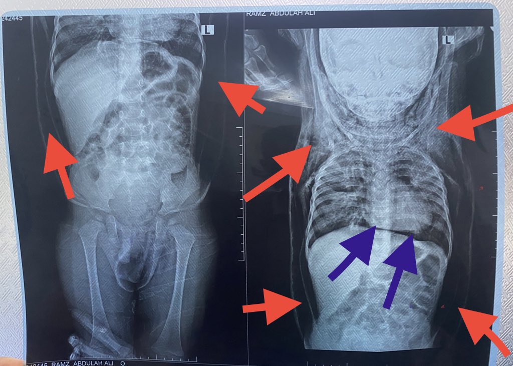 Patient with history of generalized body swelling and subcutaneous crepitu suspected emphysema,