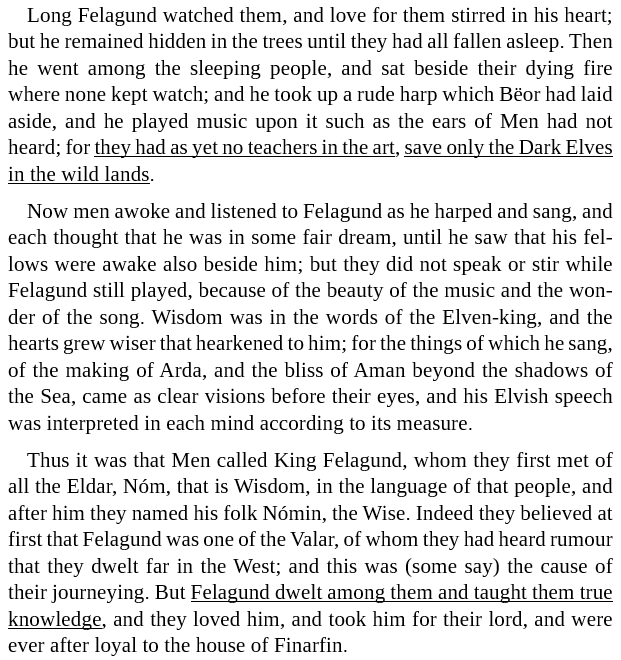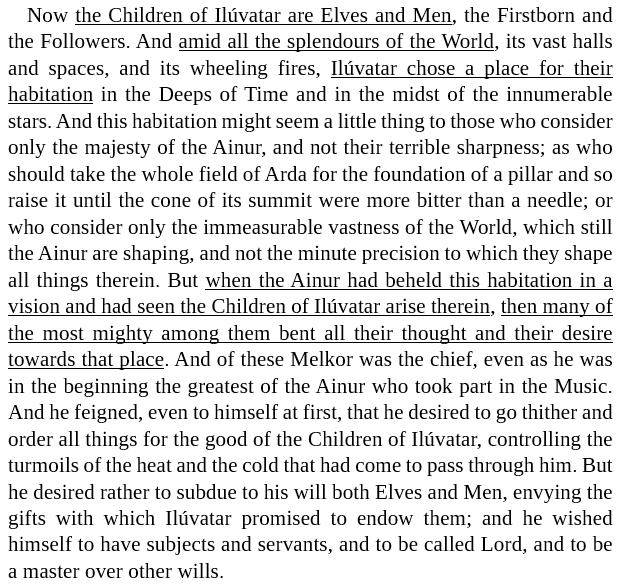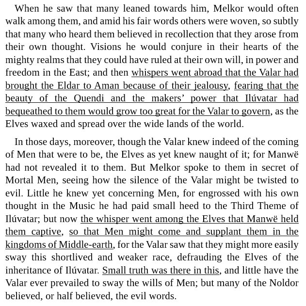 A perfect setup for Sauron in his new form as ‘Annatar’, the ‘Lord of Gifts’ to finally pitch his project: ‘Make Middle-earth as fair as Valinor’ (by undoing the marring) combined with a ‘teach the dummies’ for good measure (playing into their arrogance).