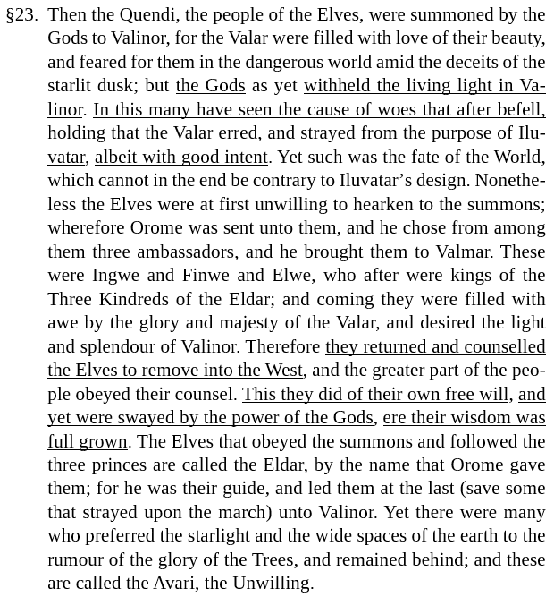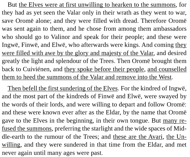 The summons of the Valar leads to the first of multiple sunderings of the Elves, each leaving groups behind. The labels are given by the group that followed the summons and they call the others ‘Moriquendi’ (Elves of the Darkness) and ‘Avari’ (Unwilling). x.com