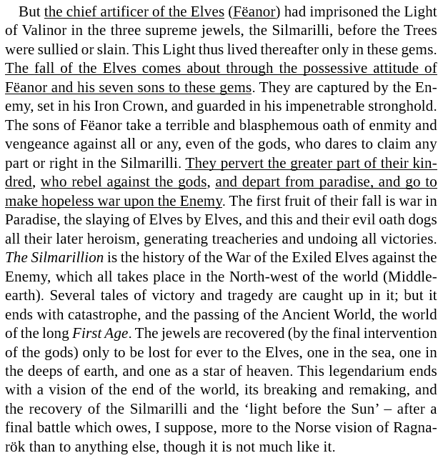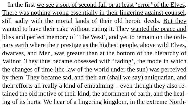 But keeping the memory of Valinor alive in beautiful objects only alleviates the symptoms but does not reach the roots of the sorrow.