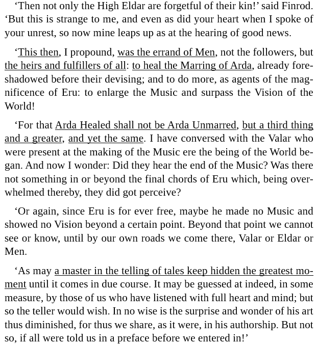 He offers them a practical way to deal with the problem of ‘Arda Marred’. They don’t have to rely on ‘estel’ anymore but now can take their destiny into their own hands and have ‘amdir’ instead.