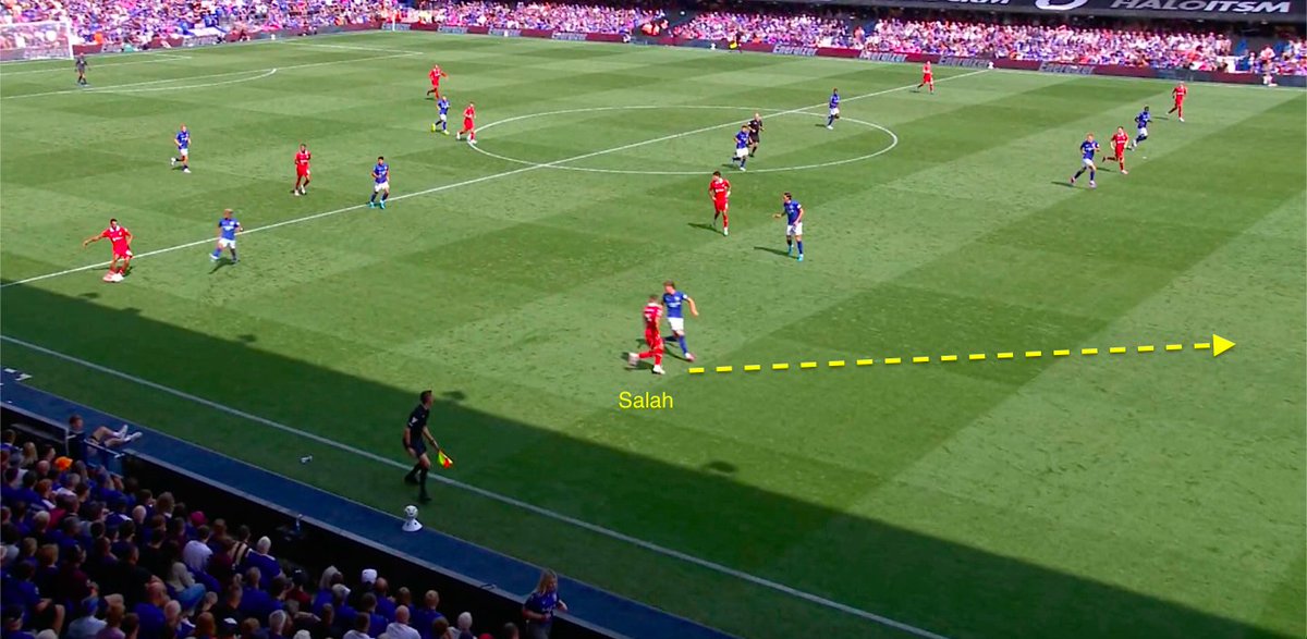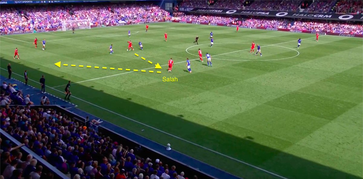 Another example of the narrow positioning which helps Salah to receive a great chance.