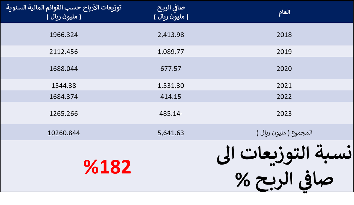- هل الشركة توزع اكثر من صافي ربحها ؟
