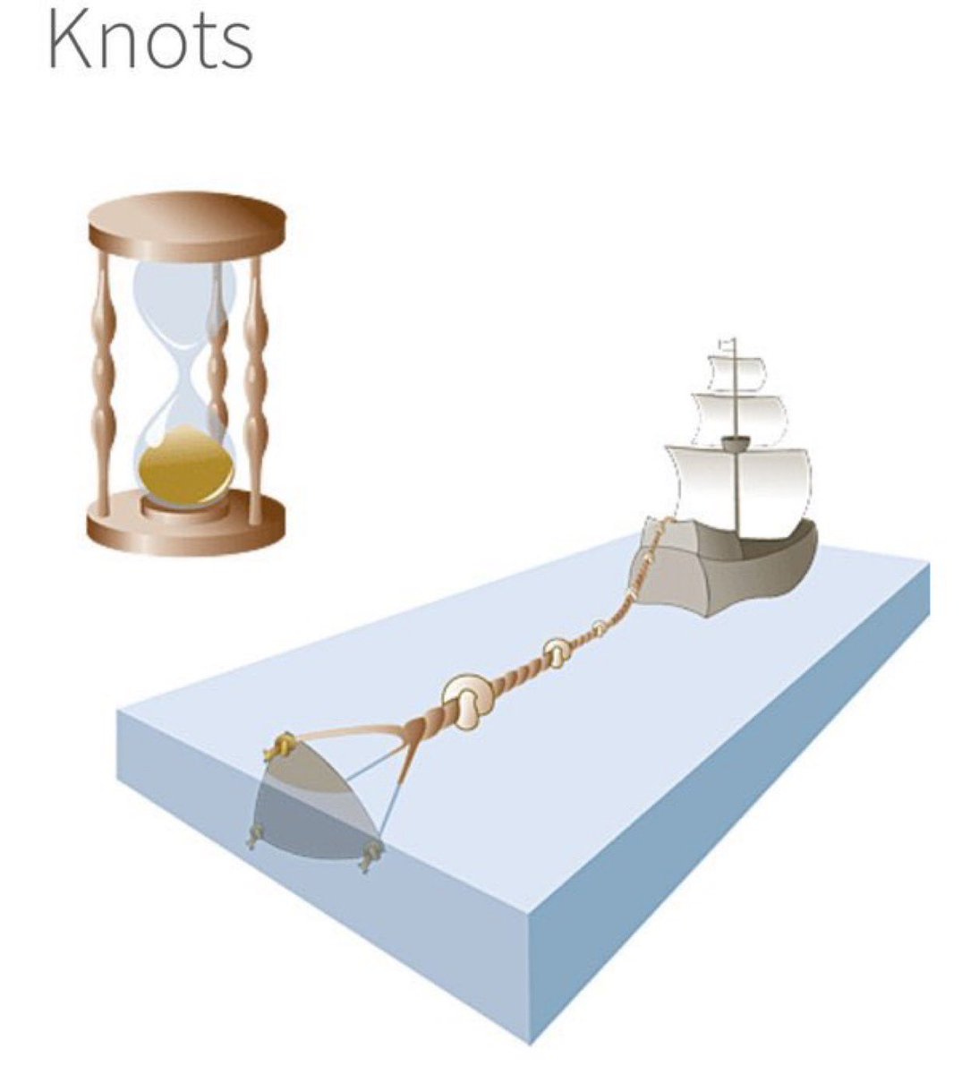 أما قطعة الخشب فكانت تلقى في المياه وراء السفينة ،ومع تحرك السفينة كان الحبل يترك ورائها بحرية وقطعة الخشب تبقى ثابتة.